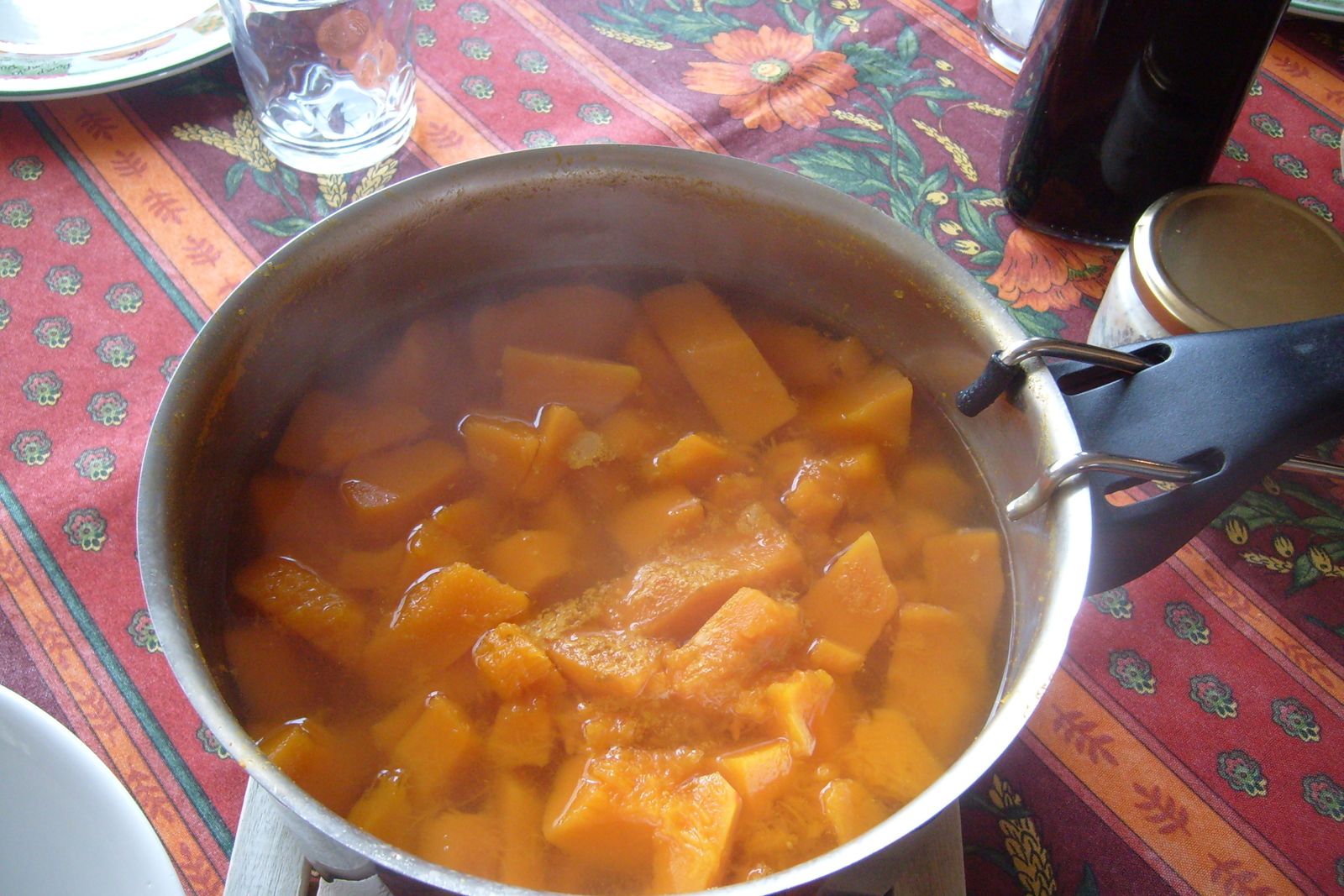 Couper et éplucher votre potimarron en morceaux (on peut également le cuire avec la peau car elle est comestible)